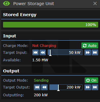 - Open the SMES's interface by left clicking it. Ensure both Input and Output are turned Off.