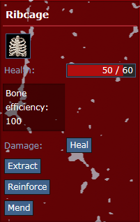 • If the bone is broken, click on "Reinforce" while holding some Bone Braces in hand.